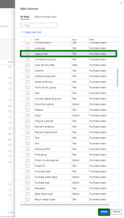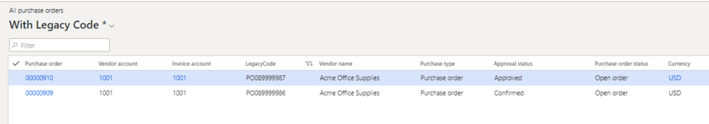 Therefore firstly we need to create a new custom field called “LegacyCode” to the Purchase Order screen.