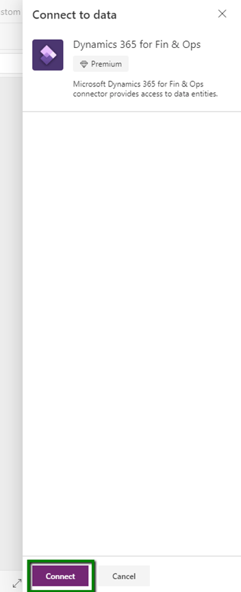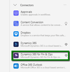 Select the connector as “Dynamics 365 for Fin & Ops”.