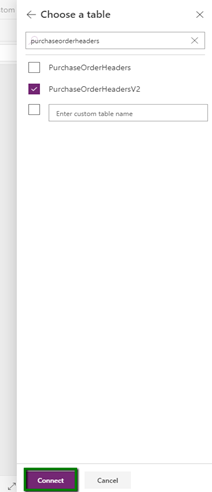 Choose your dataset and then choose the respective table in our scenario “PurchaseOrderHeadersV2”.