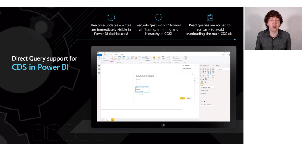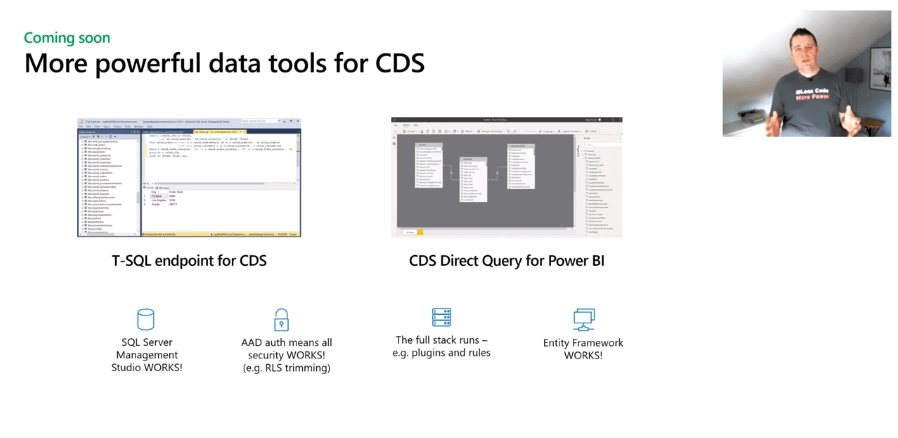 The two of the features below are one of favorites from the session which are Adding direct query support in Power BI for the CDS and connecting to T-SQL users directly to the Common Data Service.