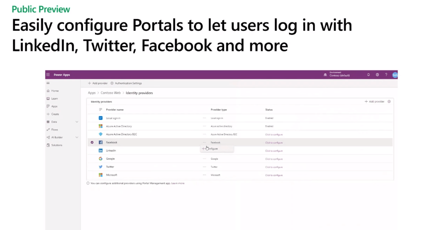 Easily configurable portals is in public preview.