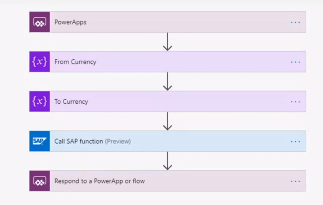 Integration Scenario diagram is shown below and in this example we use a Power App to fetch the exchange rate data from SAP and display the exchange rate and then use it to multiply with slide value.