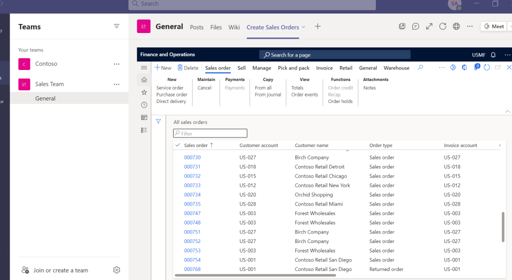 - Access D365 FinOps “All Sales Orders” screen. Copy the URL for the page https://xxxxxxxx.operations.dynamics.com/?cmp=usmf&mi=salestablelistpage