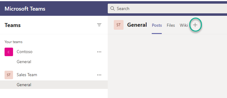 2. Go to the respective “Sales Team” group in Microsoft Teams and click “+”