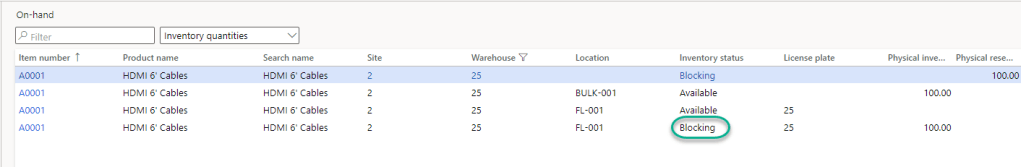 Let’s have a check on the inventory and it shows that the status for the Item “A001” is changed as “Blocking”.