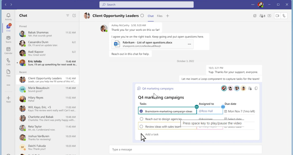 Microsoft loop in Teams in action. So that everyone can edit in live all the components and then content dynamically updated and able to share in outlook.