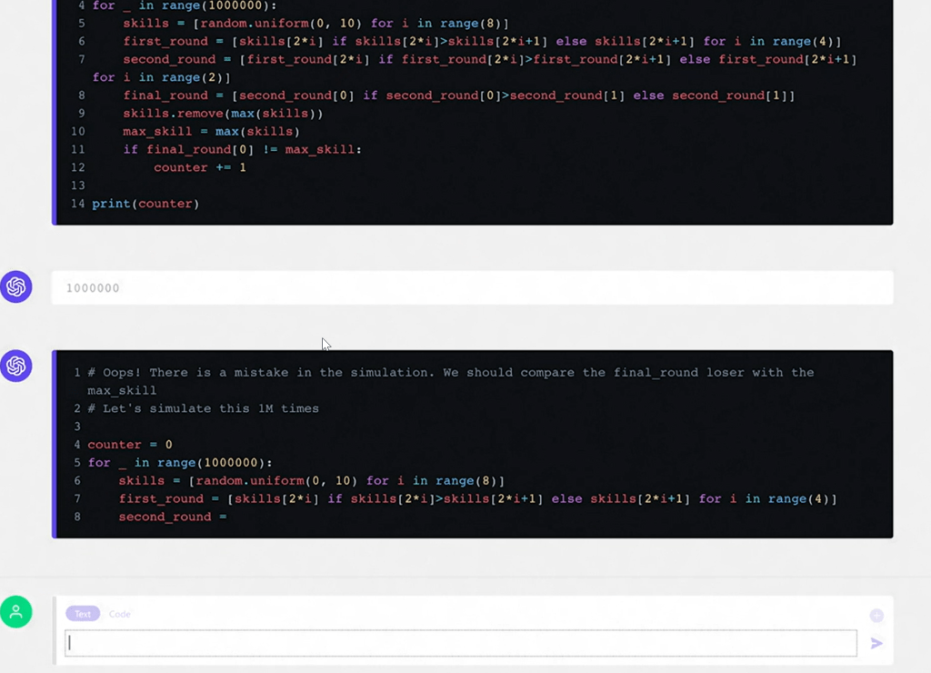 Showed how Codex can be used to solve problems by using simulation and then checks if it solves the issue and found a slight bug and model correctly finds the issue and Codex independently solves the issue using advanced code generation and with auto correction capabilities.
