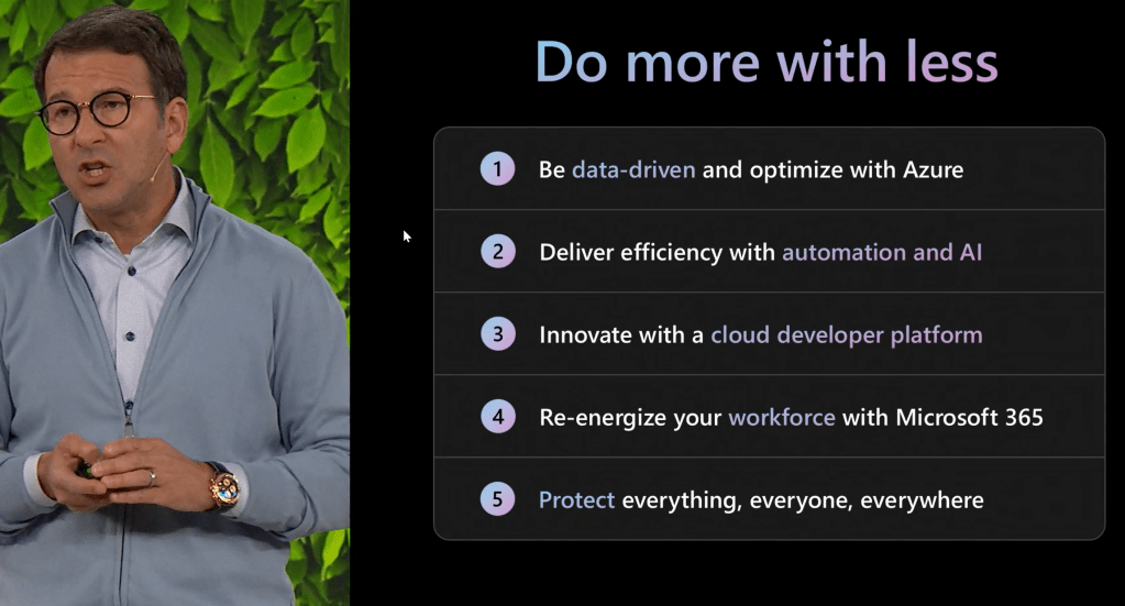 Satya Nadella, CEO at Microsoft highlighted during the opening session how Microsoft is helping customers do more with less across the Microsoft Cloud. Last year there were more discussion around digital transformation and this year it is about the Digital Imperative.