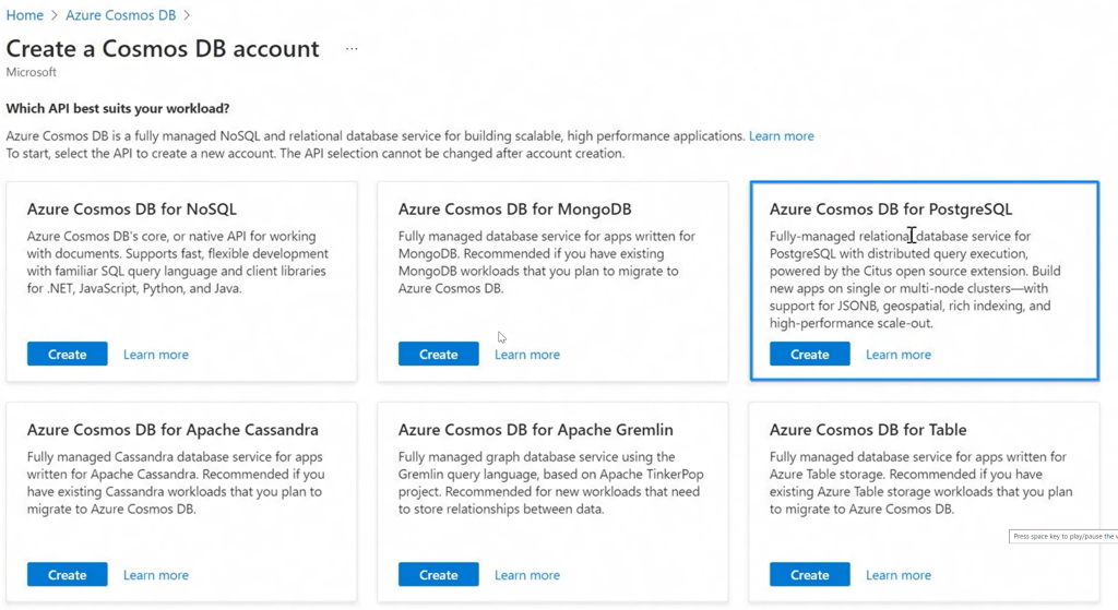 Azure Cosmos DB now for PostgreSQL.