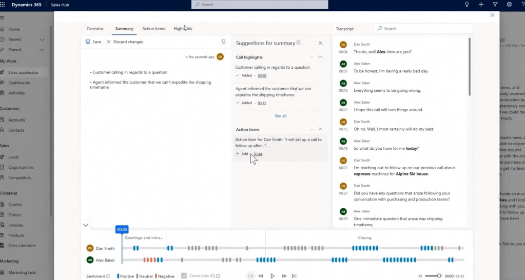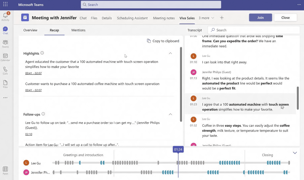 Applying conversational intelligence to Viva Sales to transcribe the calls. D365 also uses same capabilities to closed deals.