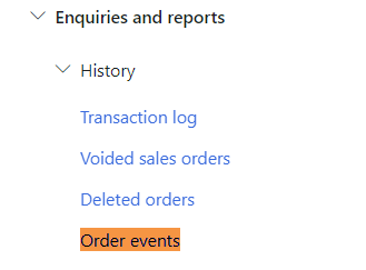 You can access this inquiry screen by navigating to Sales and marketing > Enquiries and reports > order events