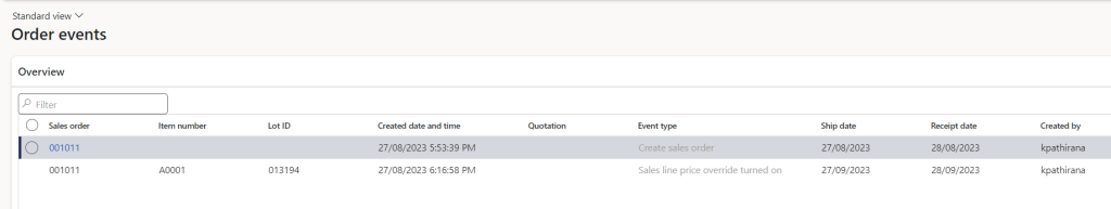 Order events feature in D365 SCM under the module sales and marketing. This is useful feature for the businesses to monitor/check/analyze sales order history to check in certain scenarios for auditing purposes. Using this feature businesses can track which users perform certain actions such as for an example Sales Order creation, cancelling, deleting, changing pricing and etc..