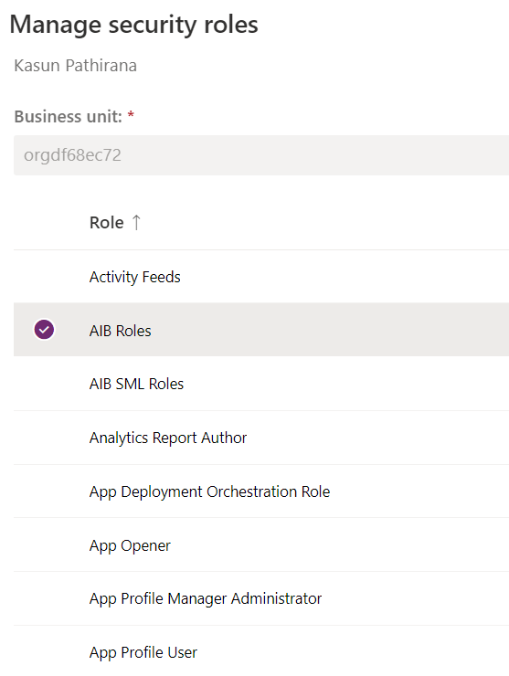 Enable AIB Roles from Users in Power Platform admin center. (Environments > Settings > Users )