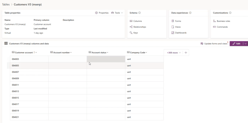 Example of Customer V3 virtual entity is shown below in the image.